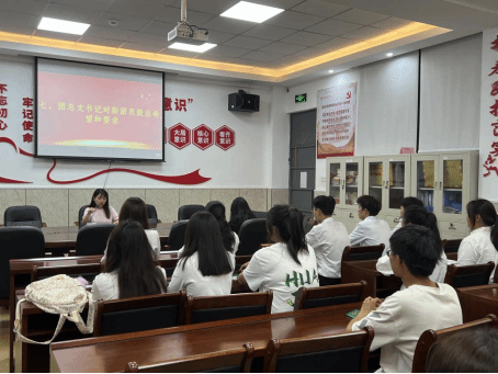 仪式在庄严的国歌中拉开序幕,全体团员目光坚定、庄严肃穆,带着激动的心情奏唱国歌,团总支书记胡彩艳老师向全体团员介绍了入团仪式的意义并宣读了新团员名单。