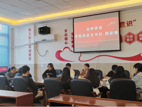 随后,由我院团总支书记胡彩艳老师针对本次的专题组织生活会和团员教育评议工作进行点评讲话。会议的最后,团支部团员重温了入团誓词。