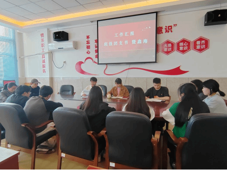 会上,班级团支部书记暨鑫海,对团支部今年开展的团日活动及“4+1”专题教育实践活动情况,特别是学习思想旗帜、坚强核心、强国复兴、挺膺担当情况和组织生活会准备情况这几个方面进行了详细的汇报,通过汇报,大家也更直观的了解到团支部工作开展的成果及存在的不足。