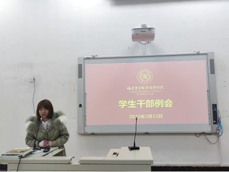 为深入了解我院学生工作,进一步提升学生干部的综合素质,增强学生干部的管理与服务意识,提高其工作能力。我院于2022年2月23日下午三点半整在生物楼412召开学生干部例会。参会人员有我院余勋信书记、陈文胜副院长与辅导员郑心怡、胡彩艳及两委、各班班委。