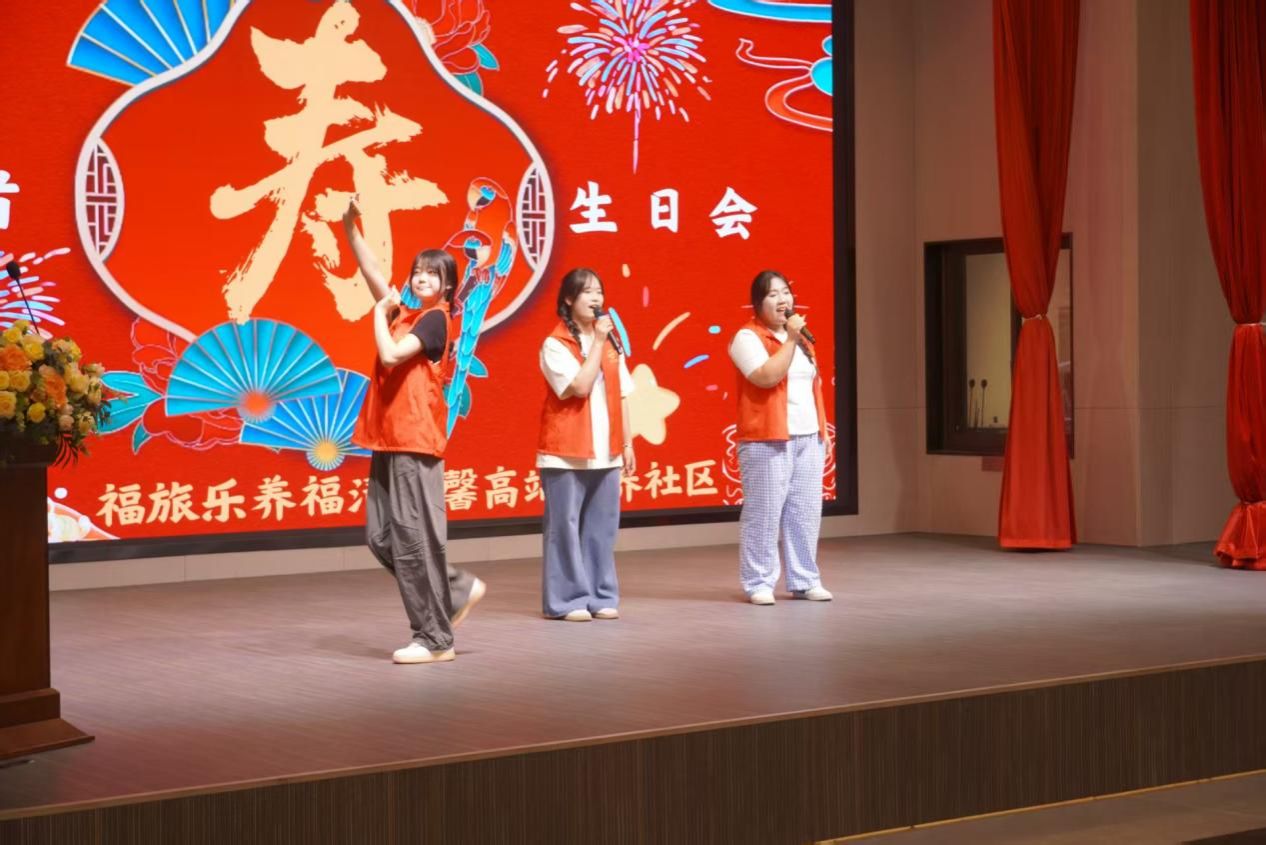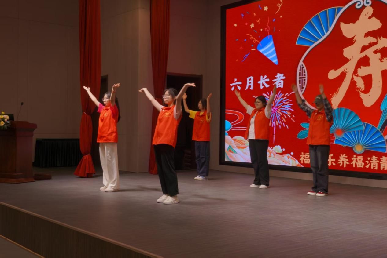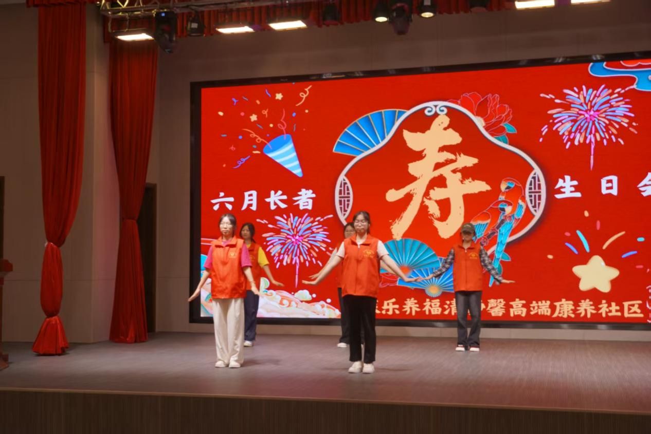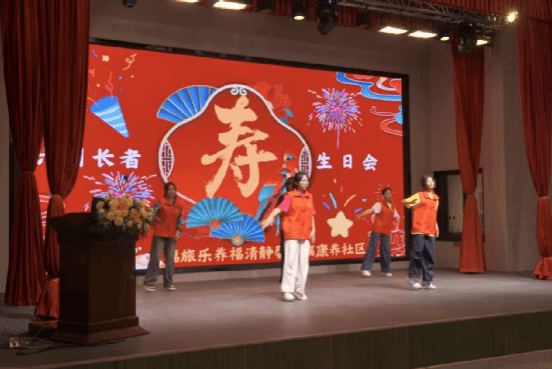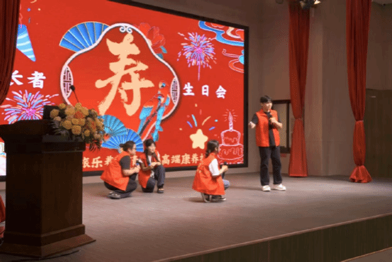 志愿者带来丰富表演,一首《小美满》,唱出了对老人美好的祝愿;动感十足又优美的舞蹈《快乐崇拜》和《美丽中国》,展现了年轻的活力与风采;搞笑小品《排队》更是逗得大家前仰后合;最暖心的要数庆生环节,当"生日快乐"歌声响起时,有位爷爷偷偷抹了眼泪。