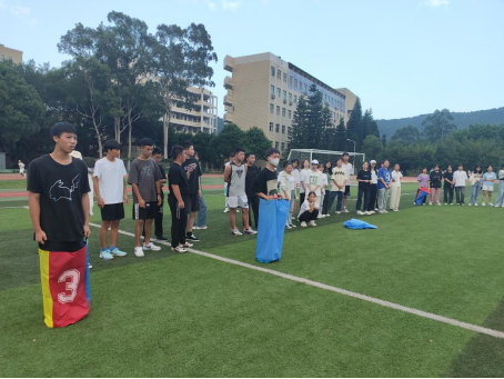 体育者,人类自其养生之道,使身体平均发达,而有规则次序之可言者也。此次趣味运动会与常规运动会不同,强调“趣味”二字,参赛人员主要为22级新生,每一支小队由10人参与,共组成15支小队。由6项趣味游戏组成比赛项目,多为团队互助性质,需要每位成员都参与其中,考验同学们之间的默契与团结,带着友谊第一比赛第二的精神在绿茵场上挥洒着浓烈的青春气息。