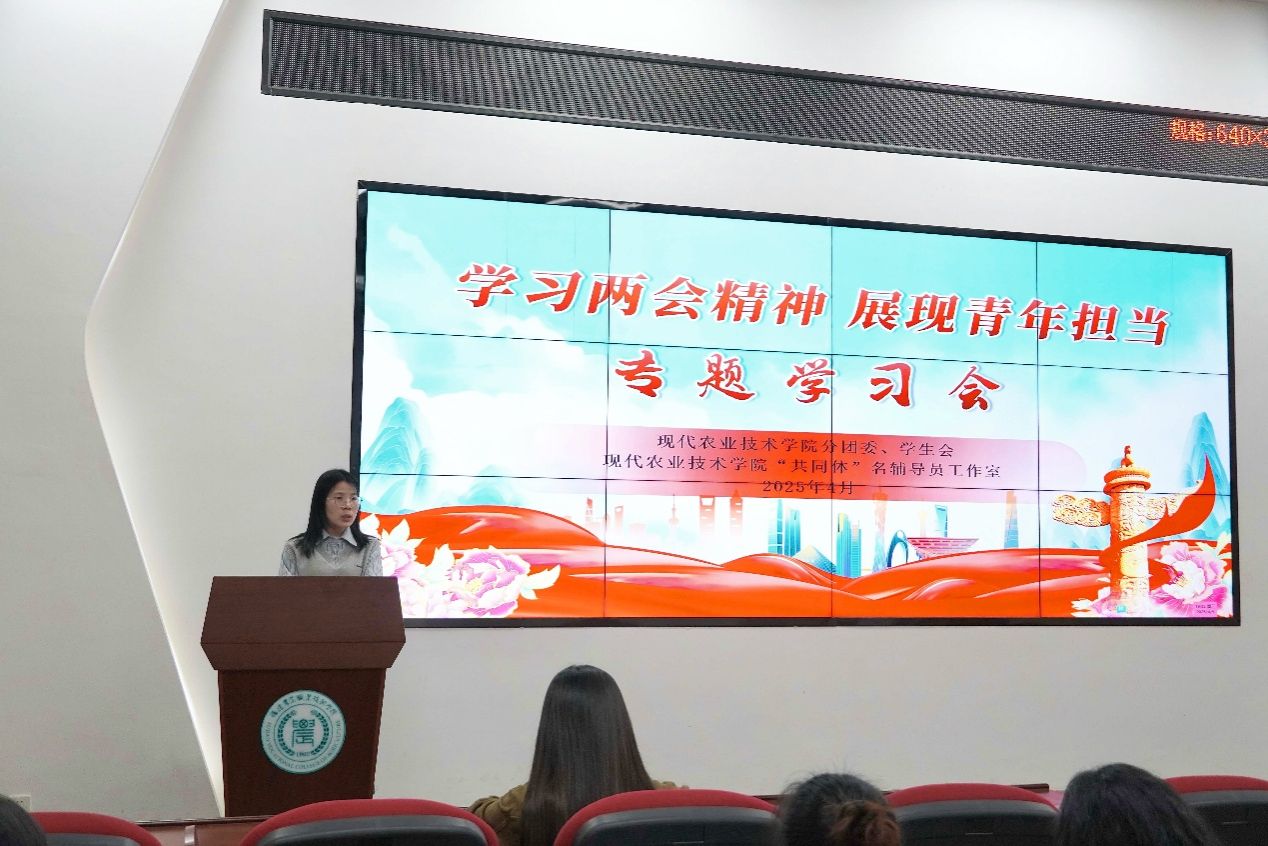 为深入学习贯彻2025年全国两会精神及习近平总书记在两会期间的重要讲话精神, 4月9日晚,我院团委和“共同体”名辅导员工作室联合组织召开“学习两会精神,展现青年担当”学习交流会,我院全体辅导员和团员青年代表参与了本次学习交流会,旨在切实引领师生领悟两会精神,并将学习成果转化为学习和干事的动力。