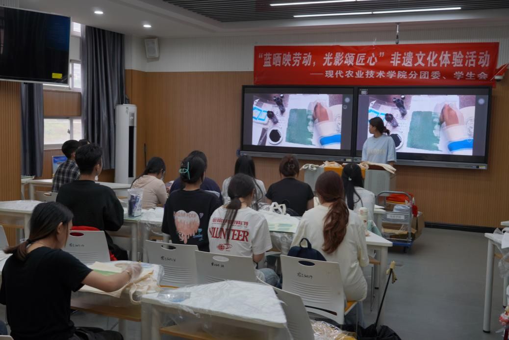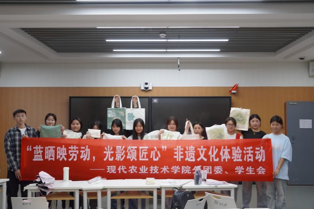为传承古老非物质文化遗传技艺,礼赞劳动精神,4月28日,现代农业技术学院青年志愿者协会在教学2号楼305教室举办“蓝晒映劳动,光影颂匠心”主题活动。40名同学通过体验传统蓝晒工艺,在普鲁士蓝的光影变幻中感受手工创作的魅力,以独特方式致敬劳动之美。