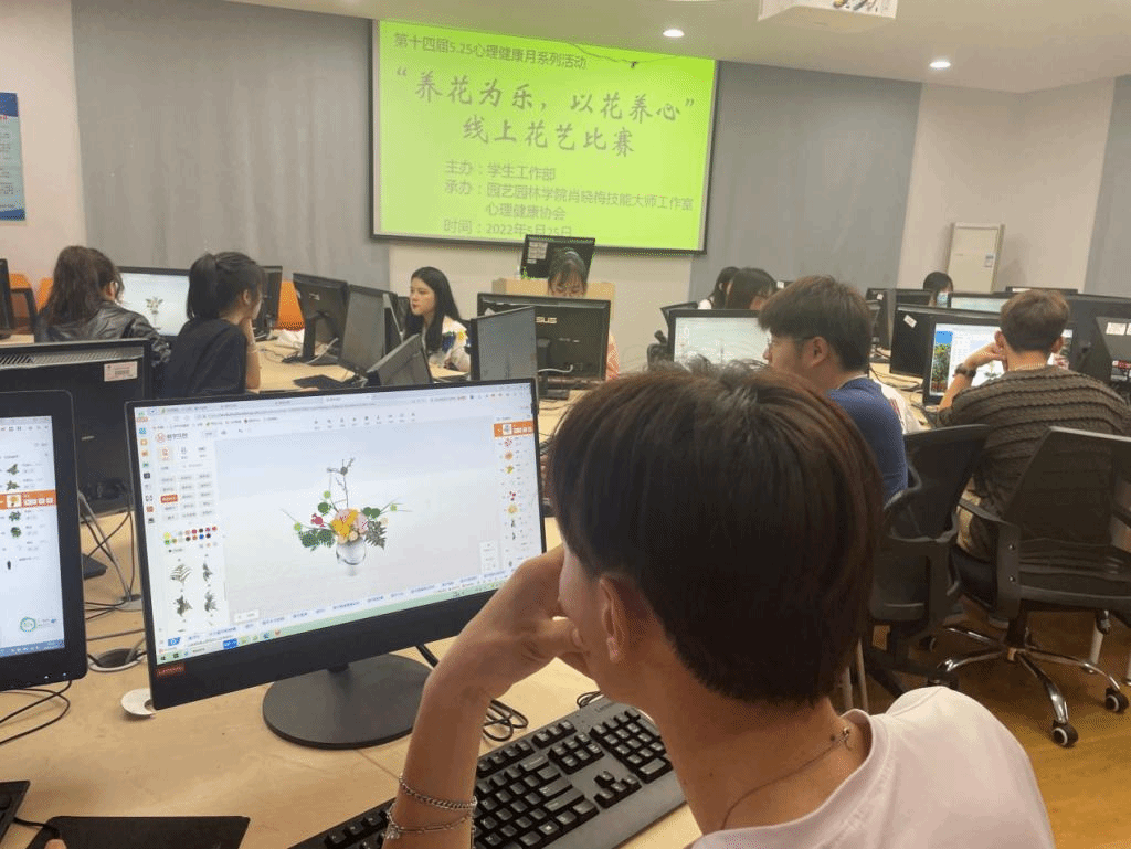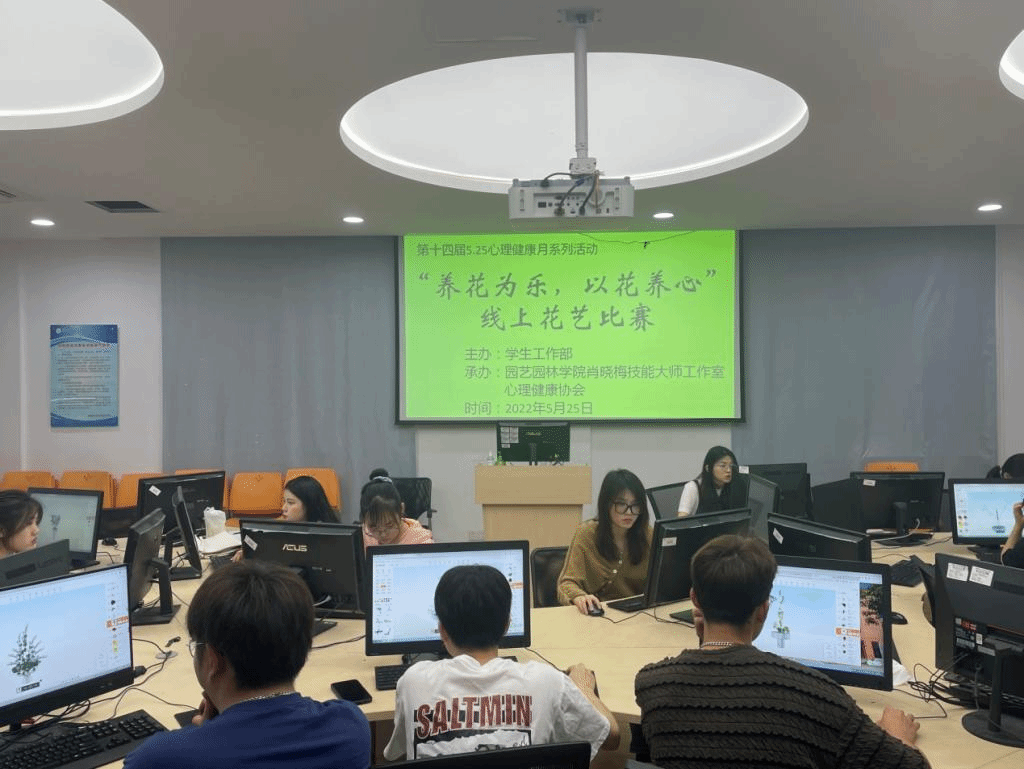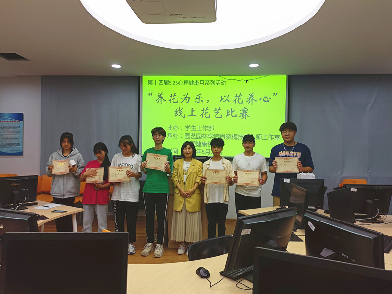 5月25日下午,由学生工作部主办,园艺园林学院肖晓梅技能大师工作室、心理健康协会承办的“养花为乐,以花养心”线上花艺比赛在创新创业仿真实训室举行。通过线上报名、培训等环节,共计50名同学参与最终比赛。