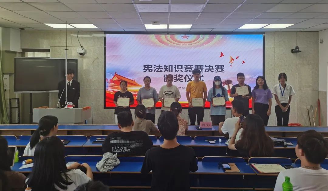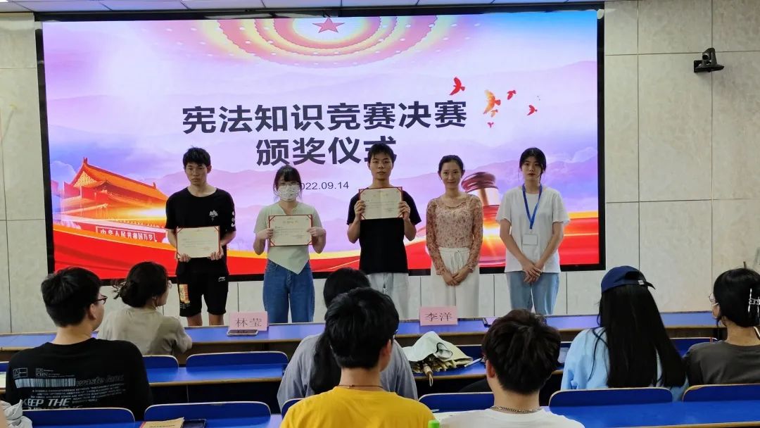 为纪念现行宪法公布施行四十周年,深入学习宣传习近平法治思想,弘扬宪法精神,维护宪法权威,更好地发挥宪法在全面依法治国和校园文化生活中的重大作用,我院举办“法在心中,律动我心”宪法知识竞赛活动。此次活动由学生工作部主办,通信学院承办,于2022年9月14日下午在综合楼701教室举办决赛。