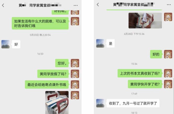 与黄同学监护人微信慰问记录