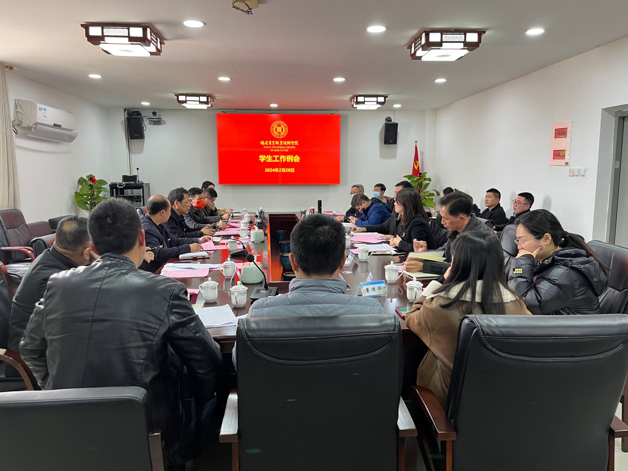 2月28日下午,学校学期初工作例会在闽台楼708召开。校党委副书记王振亮,校党委委员、宣传部(统战部)部长詹其仙,学工部部长欧高政,后勤管理处、安全保卫处、团委、福州校区管委会负责人,各二级学院党总支书记、学工办负责人、就业辅导员以及学工部相关成员参加了会议。会议由学工部部长欧高政主持。