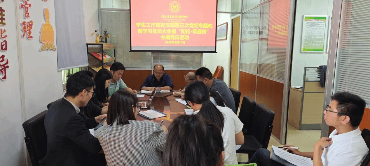 学生工作部党支部于5月17日,在创新楼201室开展第三次党纪专题教育学习党员大会暨“知纪·筑底线”主题党日活动。党支部全体党员出席本次会议,会议由支部书记欧高政主持。