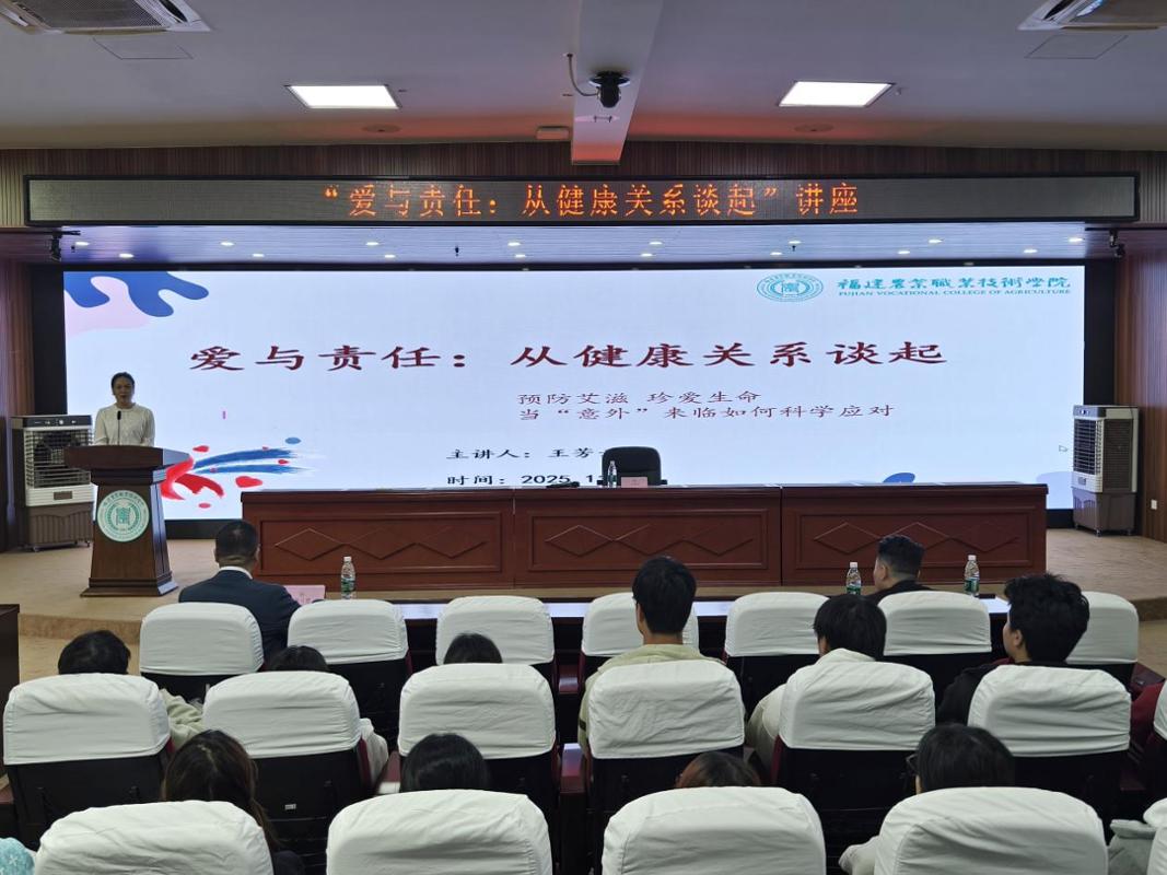 为增强青年学生的健康责任意识,树立正确的交友观、恋爱观,2025年11月5日,我校学生工作部特邀福清市妇幼保健院王芳云主任医师到校开展专题“爱与责任:从健康关系谈起”讲座。