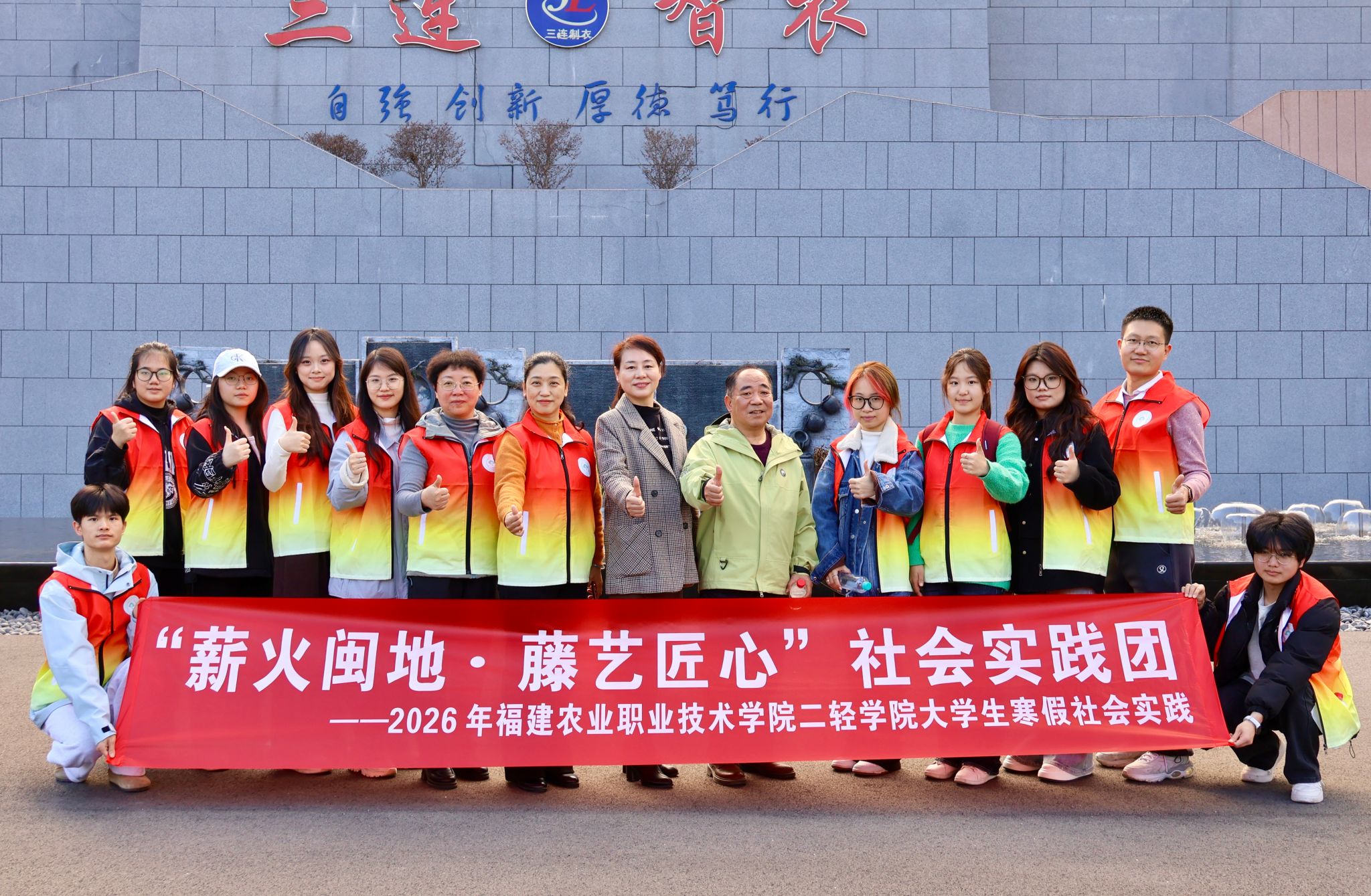 1月27日上午,二轻学院“薪火闽越,藤艺匠心”社会实践团前往永泰县开展藤编非遗研学活动。本次活动由永泰县文化馆(永泰县非物质文化遗产保护中心)、二轻学院及福建植福实业有限公司联合组织,通过实地参访、技艺学习与动手实践相结合的形式,引领师生深入体验藤编工艺的传承与发展。实践团首站抵达福建植福实业有限公司,参观葡萄曜非物质文化展览馆。在省级非遗传承人张庆明的讲解下,师生系统了解了永泰藤编的历史源流与工艺演变,...