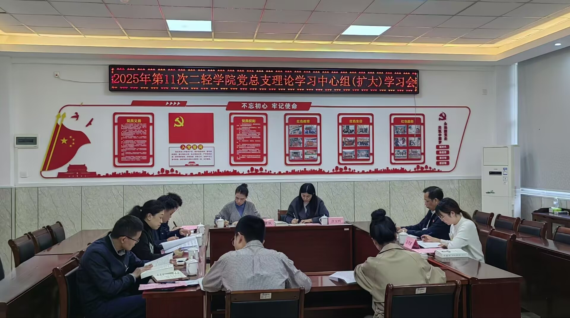 11月4日,二轻学院党总支召开理论学习中心组(扩大)专题学习会,专题学习《习近平谈治国理政》第五卷中关于中国式现代化的重要论述,重点围绕“以中国式现代化全面推进强国建设、民族复兴伟业”主题开展研讨。会议由二轻学院党总支副书记(主持工作)张一宁主持,学校党委副书记王振亮巡听旁听指导。学习会上,二轻学院领导班子成员及青年理论小组成员代表共5名同志结合工作实际作重点发言,与会人员围绕学习内容进行深入交流研讨。...