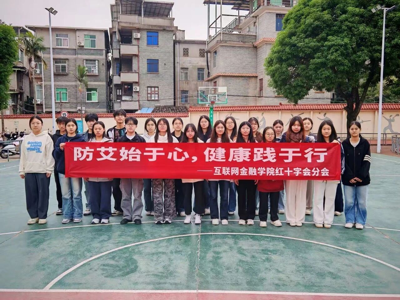 为增进广大学生对艾滋病防治知识的了解,消除认知误区,倡导科学防艾、关爱他人的校园风尚,近日,由互联网金融学院红十字分会举办的“防艾始于心,健康践于行”主题活动在首山校区操场顺利举行。 14:00,活动正式启幕。同学们在工作人员引导下,亲手制作并书写祝福红丝带,一句句真挚的话语被系上鲜艳的红丝带,共同汇聚于主题展板之上,形成一片温暖的“爱心之墙”。“3、2、1,开始!”随着主持人一声令下,各小组代表手持特制粘性手掌道具,...
