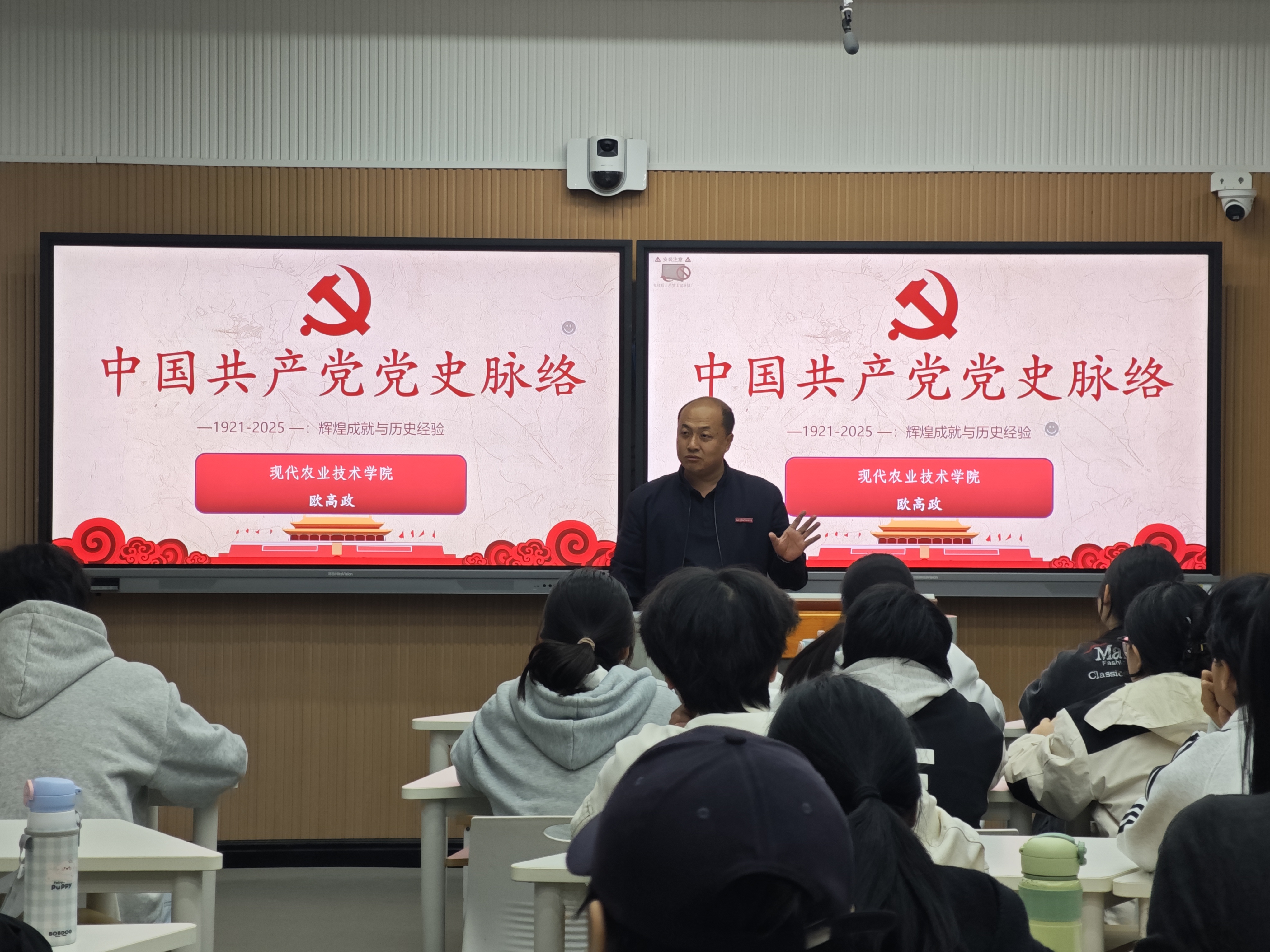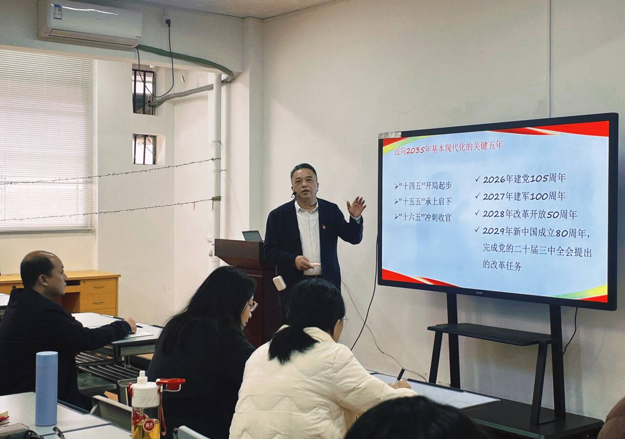 12月11日晚,现代农业技术学院党总支书记欧高政以“学习贯彻党的二十届四中全会精神 奋力开创中国式现代化新篇”为主题,为全体青马学员作专题授课。重点聚焦国家“十五五”时期发展重要着力点与青年使命担当,引导学员深入理解党的二十届四中全会精神内涵与青年责任。在专题报告中,欧高政书记从历史传承、理论创新、实践指引与国际格局四个维度,深入阐释了党的二十届四中全会精神的内涵。并结合丰富的案例,生动的讲解,帮助学员建立起对党的二十届四中全会精神的系统认知。随后,欧高政书记重点围绕“十五五”...
