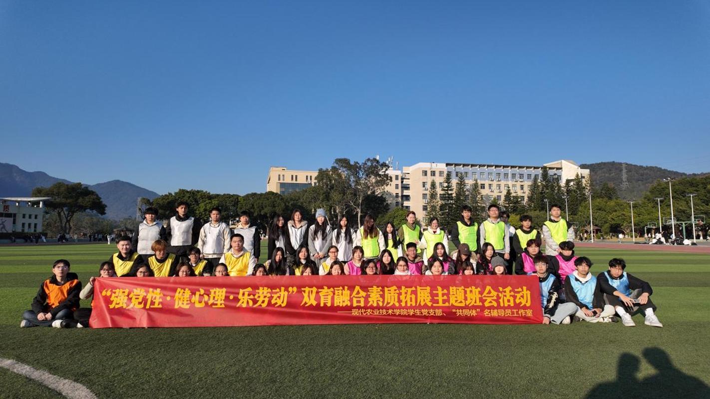 2026年1月7日,现代农业技术学院学生党支部联合“共同体”名辅导员工作室,精心举办“强党性·健心理·乐劳动”素质拓展主题班会活动。