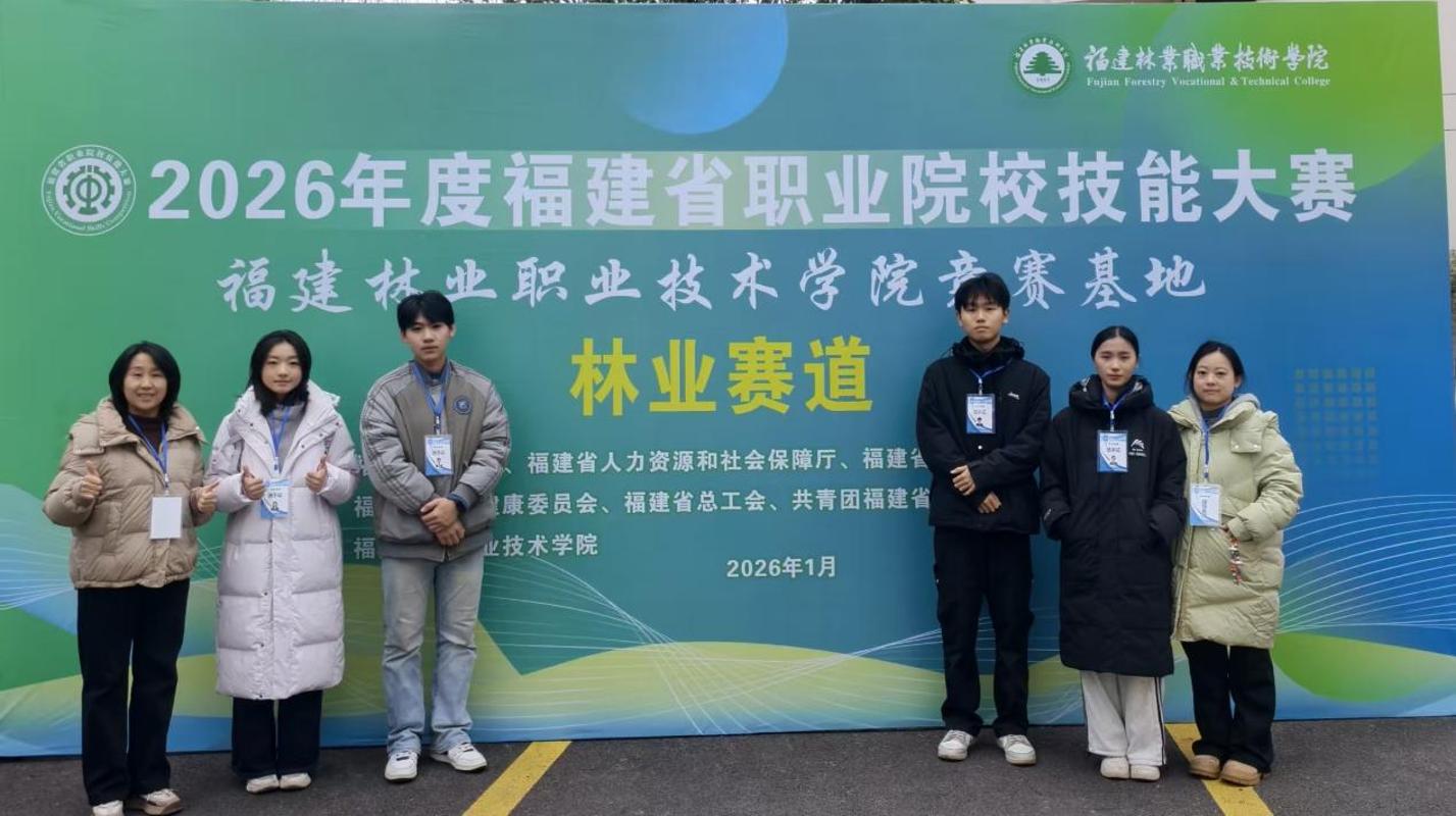 2026年1月5日至8日,2026年福建省职业院校技能大赛林业赛道(高职组)在福建林业职业技术学院成功举办。本次赛事共有来自全省13所高职院校的22支队伍同场竞技。由我院江国英、李慧两位老师指导,毛诗和、周宇轩、李婧悦、杨楠四位同学组成的参赛队伍,凭借扎实的专业功底、清晰的创新思路和出色的团队协作能力,在为期四天的赛程中沉着应对、稳定发挥,最终荣获大赛银奖。此次获奖充分展示了学院在林业类专业人才培养方面的成效,是学院持续深化教育教学改革、注重学生实践能力与综合素质培养的集中体现...