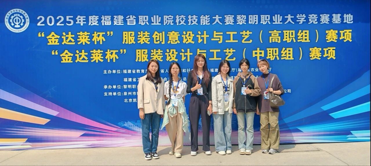 3月26日,历时两天的2025年度福建省职业院校技能大赛“服装创意设计与工艺”(高职组)赛项圆满落幕,我院2024级服装与服饰设计专业孙海萍、王昕莹同学组成的团队在全省13所院校的25支参赛队伍中脱颖而出,荣获大赛三等奖。指导老师与参赛团队学生合影本次大赛以品牌服装企业的产品开发工作任务为主线,全面检验参赛学生在创意设计能力、成衣制作水平、综合职业素养、团队协作能力等方面的专业水平,同时注重考察作品的市场应用价值与创新创意表现。...