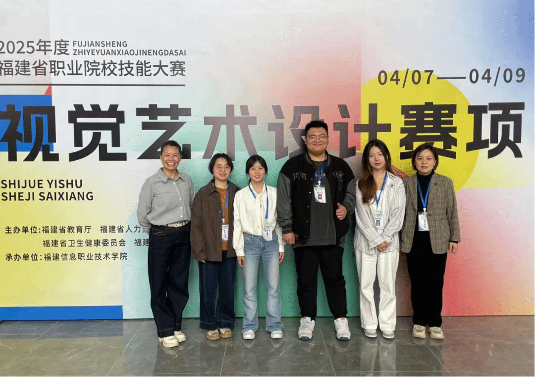 4月9日,历时两天的2025年度福建省职业院校技能大赛“视觉艺术设计”(高职组)赛项圆满落幕,我院2024级艺术设计专业肖玥琪、杨梦艳、黄天铖同学组成的团队在全省40支参赛队伍中表现优异荣获大赛一等奖。指导老师与参赛团队学生合影本次大赛以“三坊七巷历史文化街区品牌推广论坛”为主题,涵盖了标志设计、海报设计、画册设计、IP形象设计等多个项目。参赛同学将平时积累的设计经验与老师们的赛前指导相结合,深入挖掘三坊七巷的历史文化底蕴,...