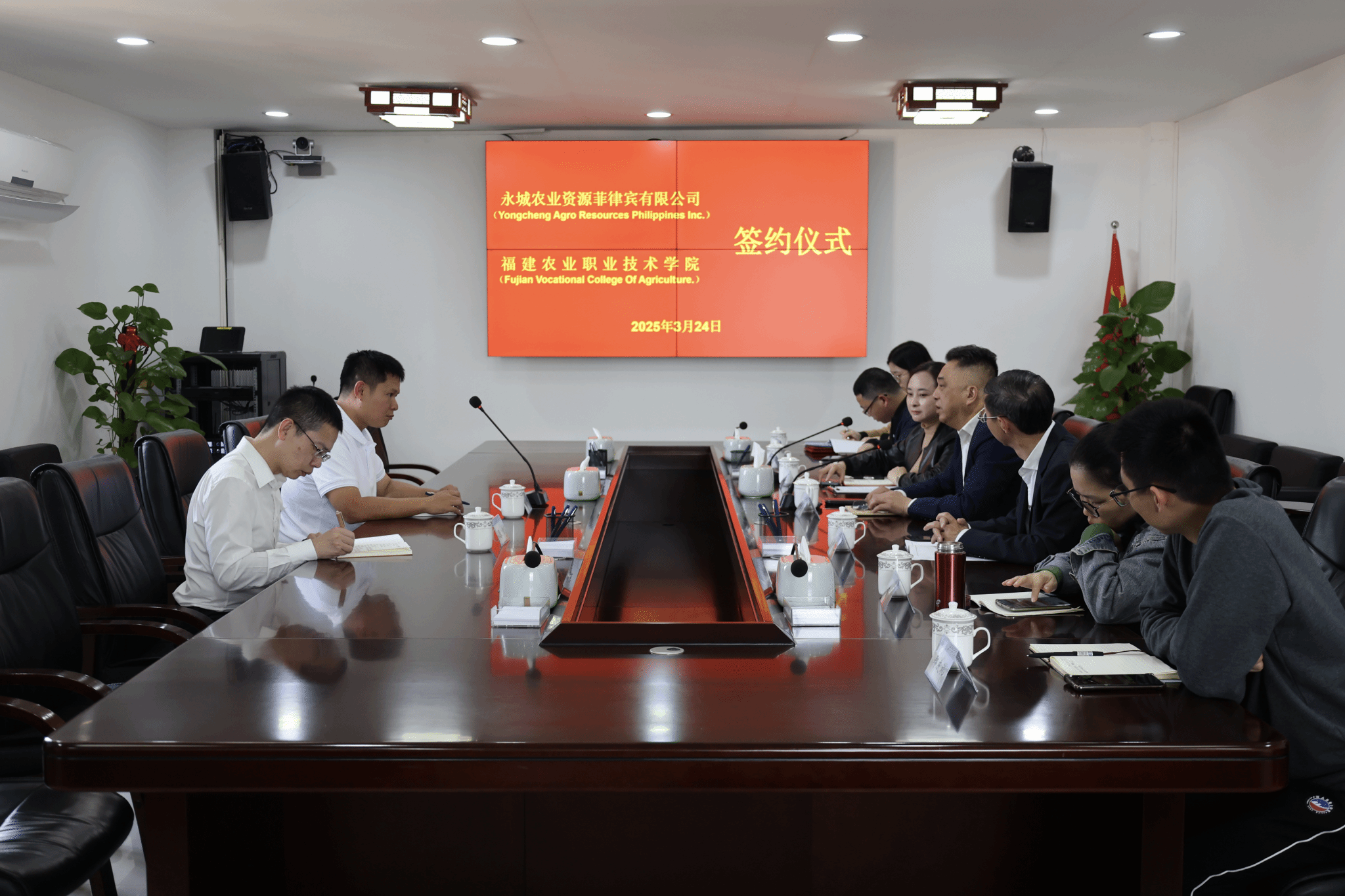 3月24日下午,学院与永城农业资源菲律宾有限公司战略合作签约仪式在闽台楼708会议室举行。学院党委委员、副院长严挺文出席签约仪式并讲话。永城农业资源菲律宾有限公司董事长戴月辉,动物科技学院党总支书记余勋信、院长韩云珍及相关教师参加了本次签约仪式。签约仪式由韩云珍主持。双方交流座谈严挺文代表学院对戴月辉董事长的到来表示热烈欢迎,并衷心感谢戴月辉董事长对畜牧行业和教育事业的长期支持。他指出,此次合作是我院服务国家“...