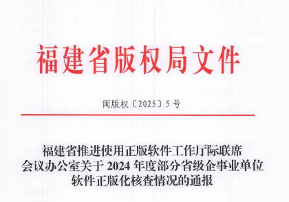 近日,福建省推进使用正版软件工作厅际联席会议办公室、福建省版权局对2024年度部分省级企事业共149家单位软件正版化核查情况进行通报,我院荣获“优秀”等次。近年来,我院高度重视软件正版化工作,将其作为提升学院信息化水平、保护知识产权的重要任务,成立了软件正版化工作领导小组,严格按照国家及全省推进软件正版化工作要求,重点完善软件采购制度,从源头把控,确保新购置软件均为正版授权;通过建立详实的软件资产台账,精准掌握软件安装、...