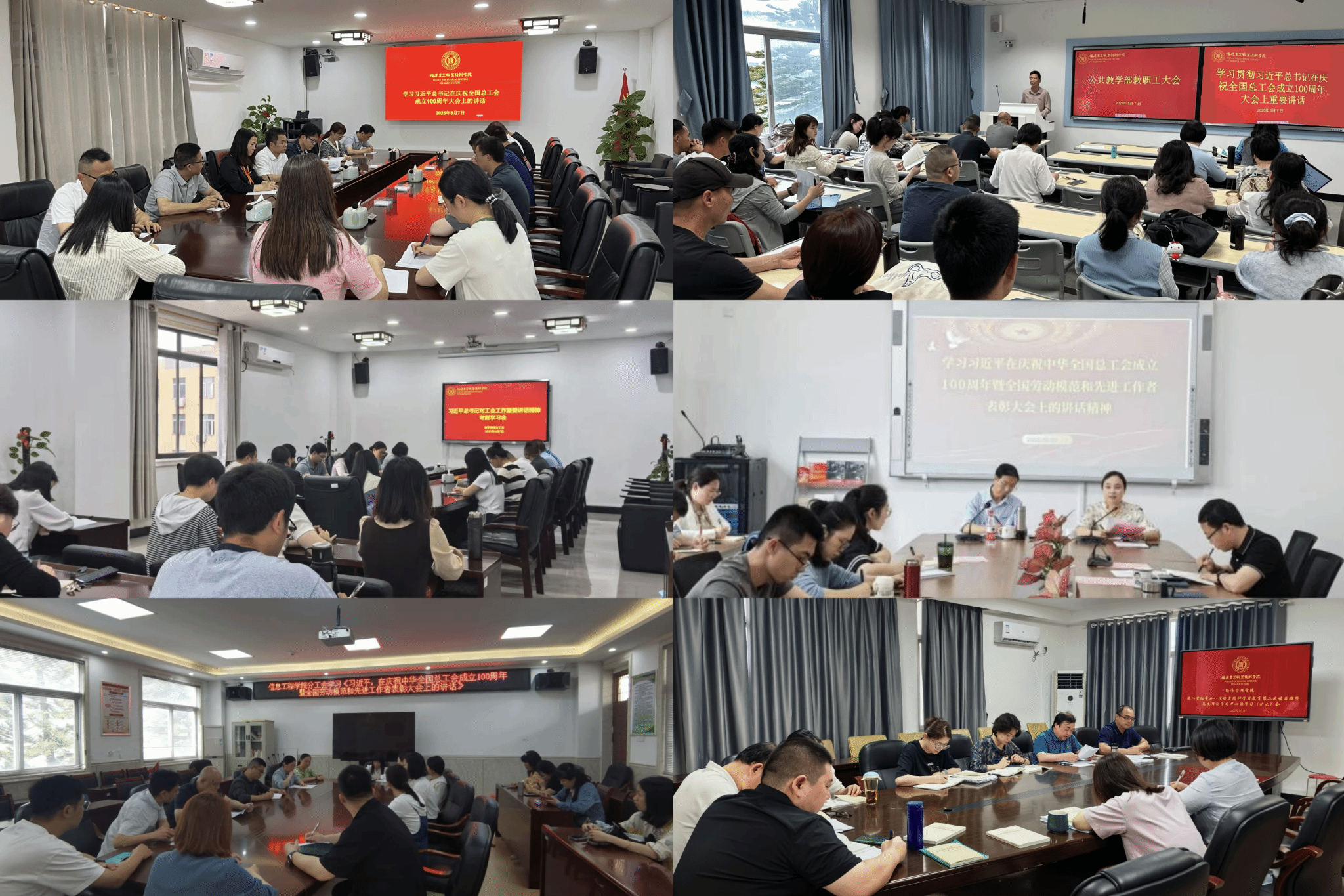 近日,习近平总书记在庆祝中华全国总工会成立100周年大会上的重要讲话,深刻总结了百年工运事业的辉煌成就与宝贵经验,擘画了新时代工会工作的使命蓝图。在各级工会引起了强烈的反响。五一假期刚结束,学院工会第一时间召开专题学习会,深入学习贯彻习近平总书记在庆祝中华全国总工会成立100周年暨全国劳动模范和先进工作者表彰大会上的重要讲话精神。会议由院工会常务副主席陈晓波主持,工会委员会委员、各分工会主席参加了会议。 ...