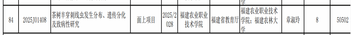 近日,从福建省科学技术厅公布的2025年度科技项目立项相关文件获悉,我院共获得 3 个项目立项,其中包括 1 个福建省自然科学基金面上项目和 2 个福建省引导性科技项目。长期以来,学院高度重视科研工作,持续加大科研投入,积极营造良好的科研氛围。未来,学院将以此为契机,继续加强科研团队建设,深化科研管理改革,提升科研创新能力,争取在更多科研项目中取得突破,为学院的高质量发展和地方科技创新做出更大贡献。