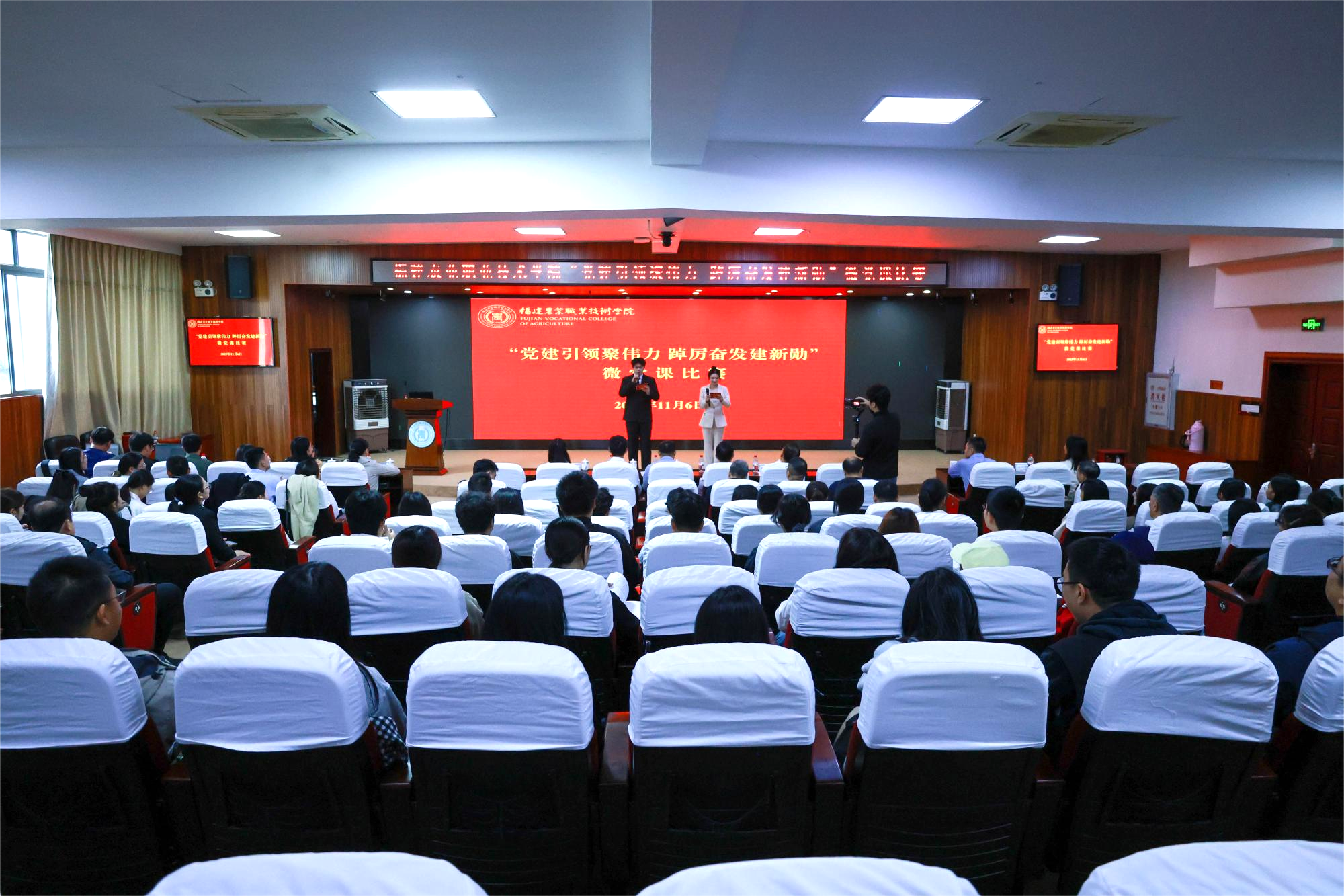 11月6日上午,学院“党建引领聚伟力 踔厉奋发建新勋”微党课比赛在闽台楼2楼学术报告厅成功举办。学院党委副书记、院长何东进,党委副书记王振亮出席活动,组织部、宣传部负责人及各二级党组织书记、师生代表共计150余人到场观摩。微党课比赛现场13名参赛选手同台竞技,紧紧围绕主题,结合农类院校特点、岗位实际与专业特色,以生动的语言、鲜活的事例和丰富的多媒体辅助手段,从“小切口”引出“大主题”、用“小故事”讲明“大道理”...