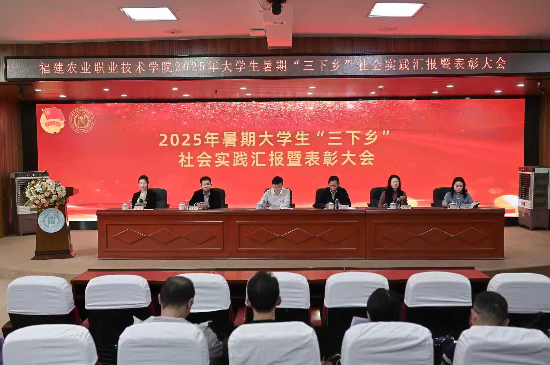 为总结大学生暑期社会实践工作成果,表彰先进典型,激励广大师生在实践中坚定理想信念、锤炼过硬本领,11月12日,学院2025年大学生暑期“三下乡”社会实践汇报暨表彰大会在闽台楼学术报告厅隆重举行。学院党委副书记、院长何东进,学院党委副书记王振亮出席大会,相关处室领导、各二级学院党团组织负责人、受表彰代表及校院两级团学骨干共200余人参加会议。大会由院团委书记林莹主持。表彰大会现场围绕“青春为中国式现代化挺膺担当”...