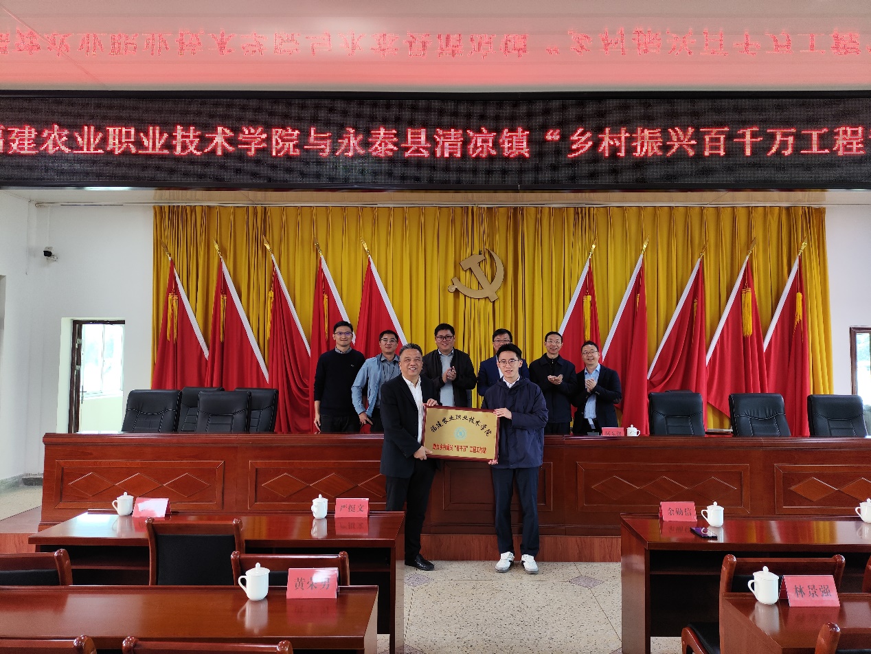 2025年11月27日,校长何东进、副校长严挺文带队赴永泰县清凉镇,开展“乡村振兴百千万工程”签约授牌仪式暨访企拓岗活动。科研与社会服务处、动物科技学院相关教师参加。在清凉镇人民政府举行的签约仪式上,何东进表示,学校将围绕清凉镇特色农业资源,共建研发平台,推动产业升级,培育本土人才,构建“高校+地方+产业”协同机制。清凉镇党委副书记、镇长郑彪指出,清凉镇在产业链延伸和人才支撑方面仍有提升空间,此次合作有助于将高校的技术与智力资源引入生产一线,...