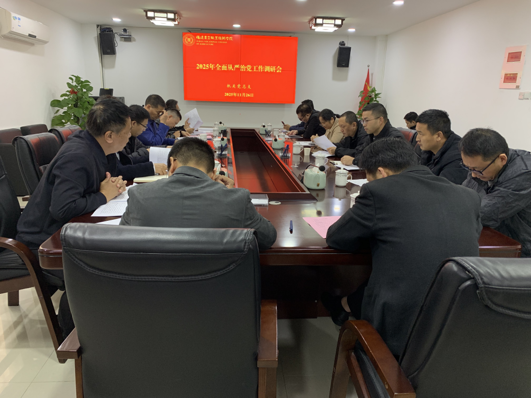 2025年11月25日上午,院党委副书记王振亮一行深入现代农业技术学院就全面从严治党工作开展专题调研。现代农业技术学院班子成员、党员代表参加座谈会。现代农业技术学院党总支书记欧高政汇报了学院党总支一年来履行全面从严治党工作情况,深刻剖析工作中存在的问题及下一步工作计划。与会党员结合自身的工作实际,从党的组织建设、思想建设、作风建设、制度建设等方面进行交流发言。 座谈会现场王振亮副书记认真听取汇报和发言,对现代农业技术学院在落实全面从严治党要求、推动党建与业务融合发展等方面取得...