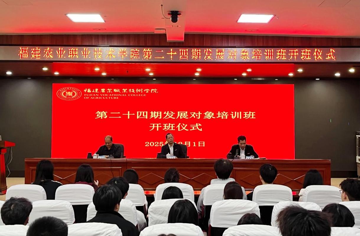 学院党委党校第24期发展对象培训班于2025年12月1日开班,至12月4日结业。培训班坚持以学习贯彻习近平新时代中国特色社会主义思想、党的二十大和二十届历次全会精神为主线,开展了理论辅导、专题研讨、红色观影、理论考核等环节的培训。本次培训班共有76名学员圆满完成培训任务、顺利结业。12月1日下午,开班仪式于闽台楼二楼学术报告厅举行,校党委副书记、党校校长王振亮,校党委委员、组织部部长陈新福,现代农业技术学院党总支书记出席,陈新福做动员讲话。开班仪式由欧高政主持。开班式上,陈新福...