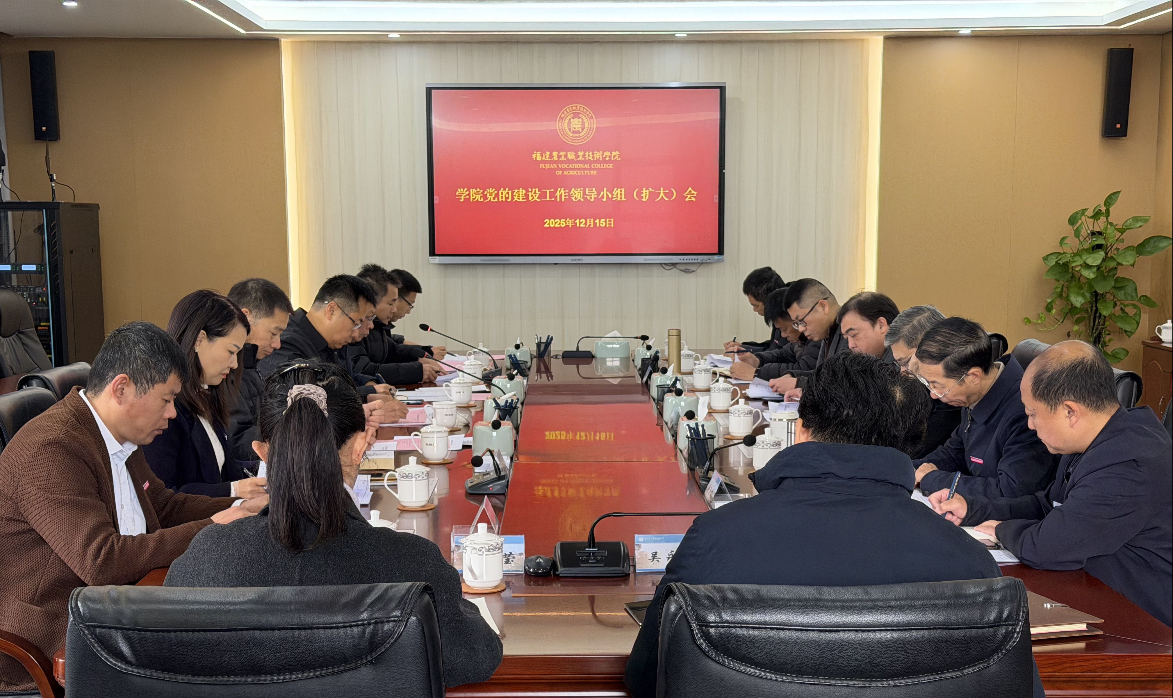 12月15日下午,学院在闽台楼816会议室召开党的建设工作领导小组(扩大)会。党委书记杨振坦主持会议并讲话,党委副书记王振亮、纪委书记陈坛春,组织部、宣传部(统战部)等相关职能部门负责人及各二级党组织书记参会。会议现场会上,组织部部长陈新福围绕政治领航、夯基垒台、选贤任能、立德树人、示范引领等五个模块,对2025年党建工作进行了全面梳理,并就学院当前入党积极分子队伍状况进行了分析研判。纪委办公室主任朱海军就本年度政治生态分析报告作了汇报。...