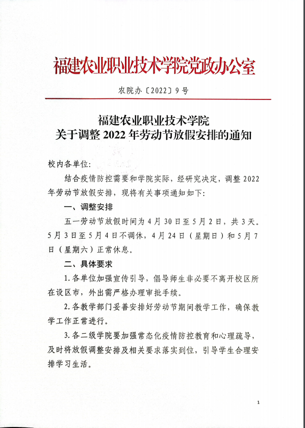 关于调整2022年劳动节放假的通知