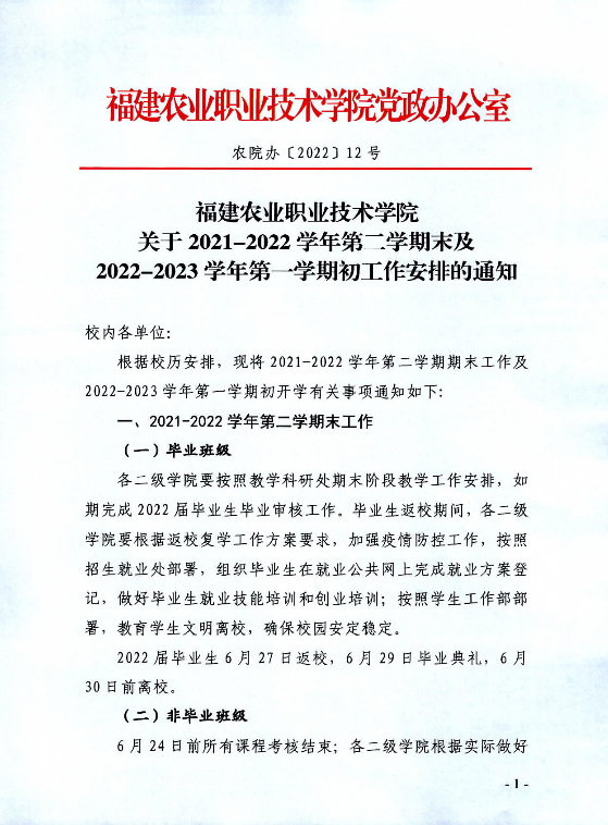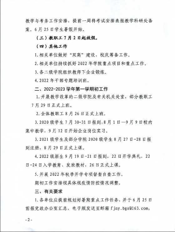 关于2021-2022学年第二学期末及2022-2023学年第一学期初工作安排的通知