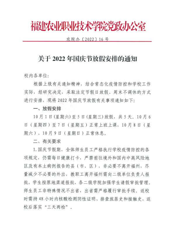 关于2022年国庆节放假安排的通知
