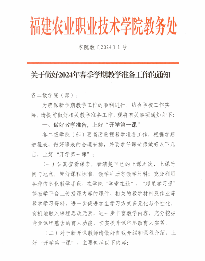 关于做好2024年春季学期教学准备工作的通知