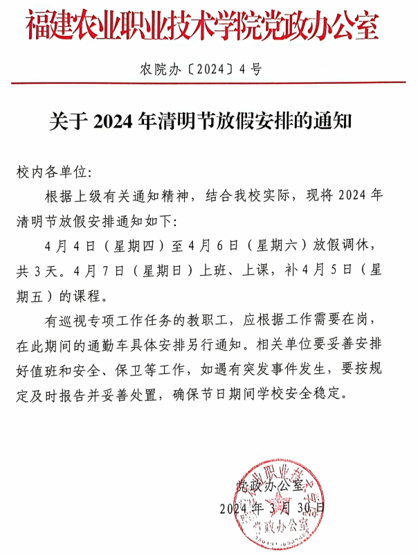关于2024年清明节放假安排的通知