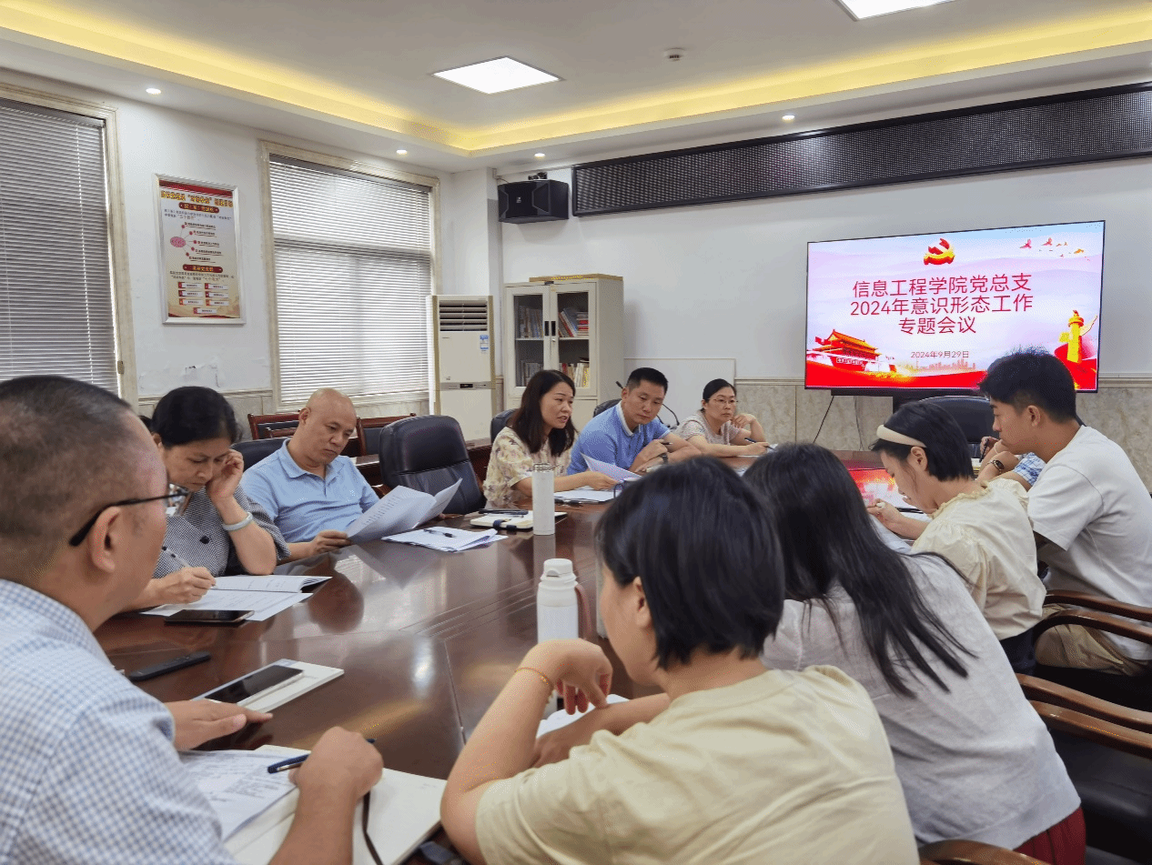 2024年9月29日,信息工程学院在教学楼1-407会议室召开2024年下半年意识形态工作专题会议,分析研判学院意识形态领域的总体态势和风险隐患,部署下一阶段具体工作。学院党总支委员、各部门各教研室负责人、部分辅导员参加会议,会议由陈小华主持。