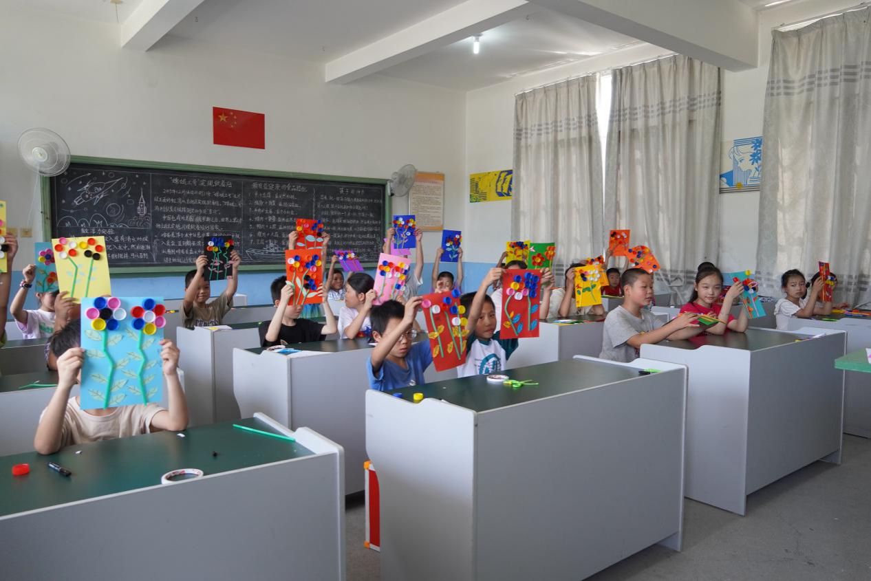 课堂上,实践团将落实生态理念、普及科学知识、培养动手能力三者有机融合,把绿色环保、健康文明的生活理念融入到课堂中。实践团与孩子们一同回忆了在日常生活中能够变废的宝的物品,并展示了生活常见废弃物的改造成品。随后实践团引导孩子们用简单的瓶盖和卡纸大胆创作,将废弃瓶盖变成独一无二的手工花,他们在动手操作中不仅体会到了变废为宝的奇妙,而且增强了环保再利用的意识。