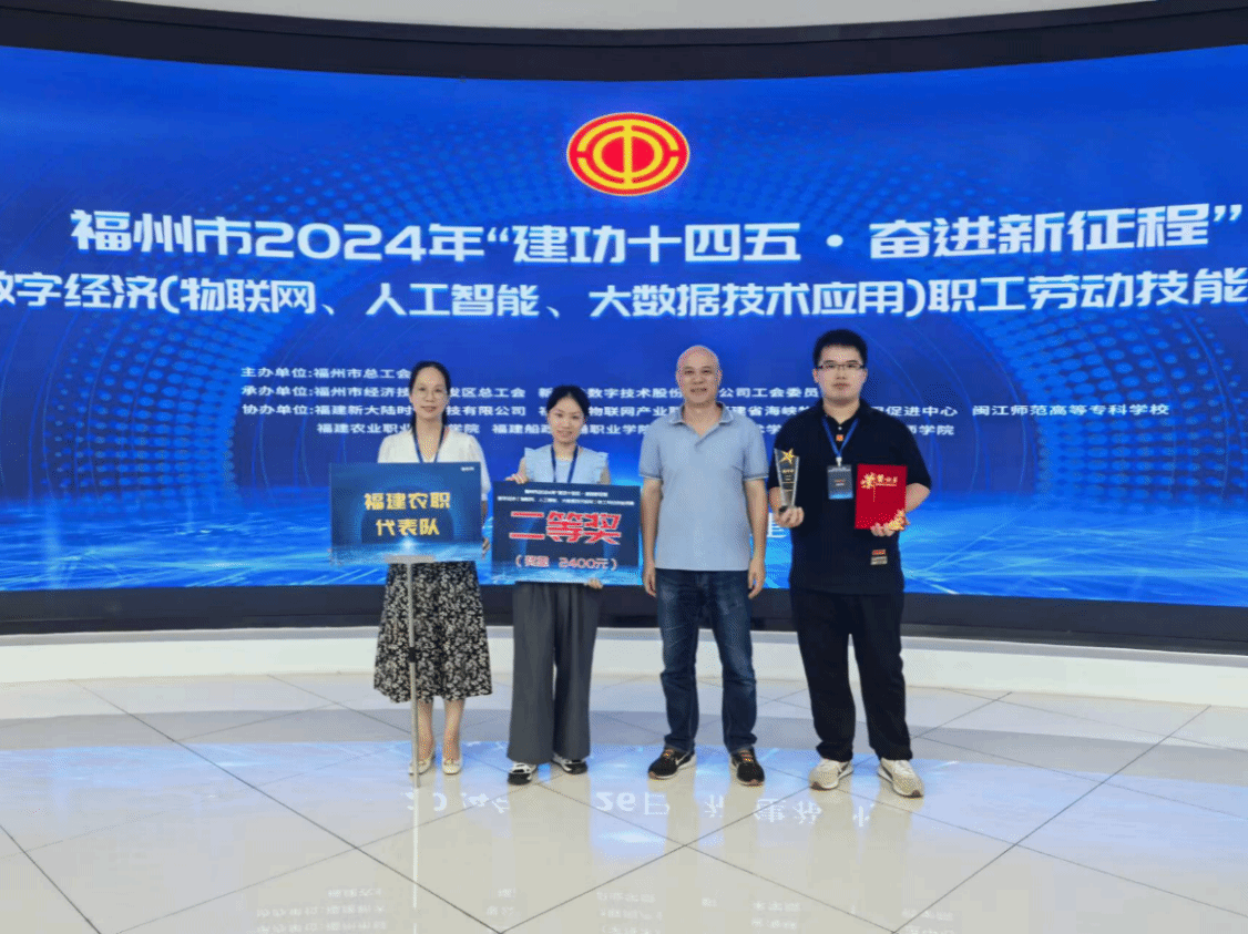 2024年9月26日,在福州市2024年“建功十四五·奋进新征程”数字经济职工劳动技能竞赛中,bat365在线登录网站注册赠送36信息工程学院的三位教师——杨文娟、李新亮、高舒苗,凭借出色的专业技能和团队合作精神,在物联网赛道上荣获二等奖,为学院赢得荣誉。