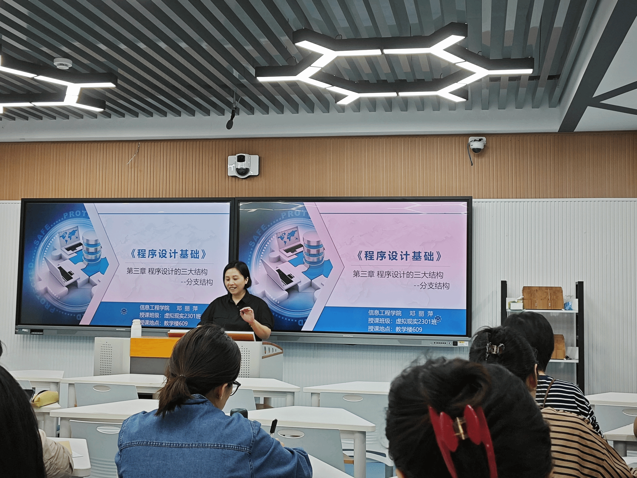 为促进青年教师的迅速成长,提升整体教育教学质量,积极推动教师“老带新”活动,2024年10月23日下午在教学综合楼609开展新老教师教学互动活动。计应和计网教研室全体老师分别听取了老教师邓丽萍的《程序设计基础》和新教师李新亮的《电子产品生产工艺及品质管理》教学片段展示。