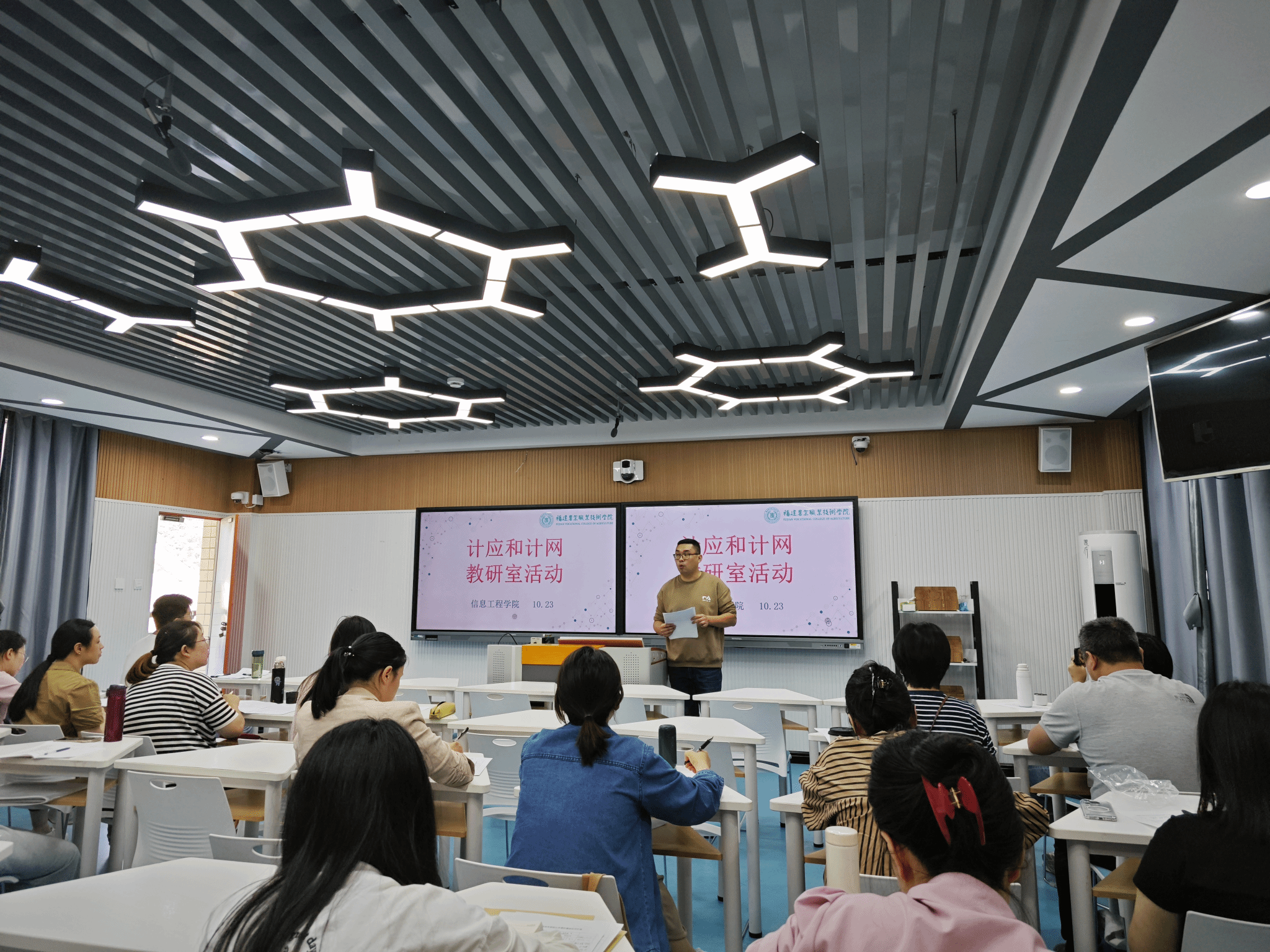 2024年10月23日下午,信息工程学院计应和计网教研室在教学楼609开展教研活动,讨论交流近期的教学情况及岗位实习内容,会议由计网教研室主任曾智良主持,计应和计网教研室全体教师参会。
