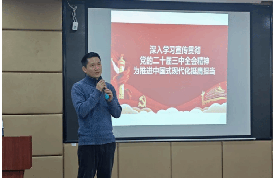 开班仪式结束后,学院党总支专职副书记赵楠开启团课第一讲《深入学习宣传贯彻党的二十届三中全会精神——为推进中国式现代化挺膺担当》,深入解读党的二十届三中全会精神,引导学员们理解当代青年的深远含义。他强调,青年学子要树立远大理想,将个人的理想追求融入党和国家事业之中,听党话、跟党走,胸怀“国之大者”;要珍惜韶华、不负青春,努力学习掌握科学知识,提高内在素质,锤炼过硬本领。此外,赵楠老师通过视频展播、提问等形式讲述了铸牢中华民族共同体意识,是维护国家统一、实现民族复兴的精神纽带,更是每一位青少年的使命担当。赵楠老师的话语掷地有声,学员们聚精会神地聆听,纷纷表示收获颇丰。