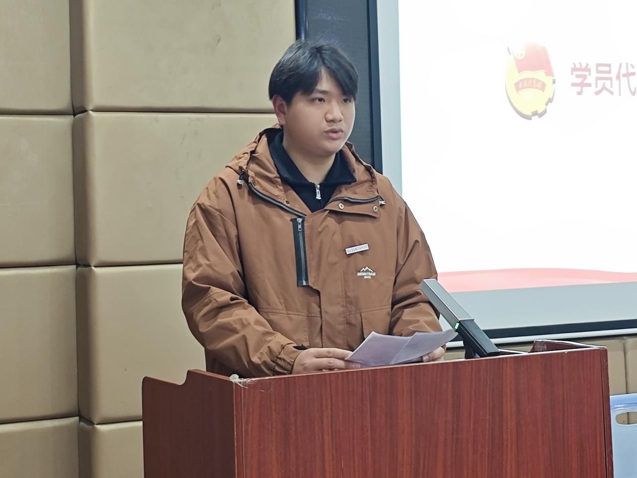 学员代表谢峙桓同学以饱满的热情表达了对团组织的热切向往,并代表全体入团积极分子郑重承诺:“团课不仅是学习的机会,更是自我成长的舞台。我们将以最认真的态度投入每一节课,以更加饱满的热情、更加坚定的信念、更加扎实的行动,投身到团组织的怀抱中!”