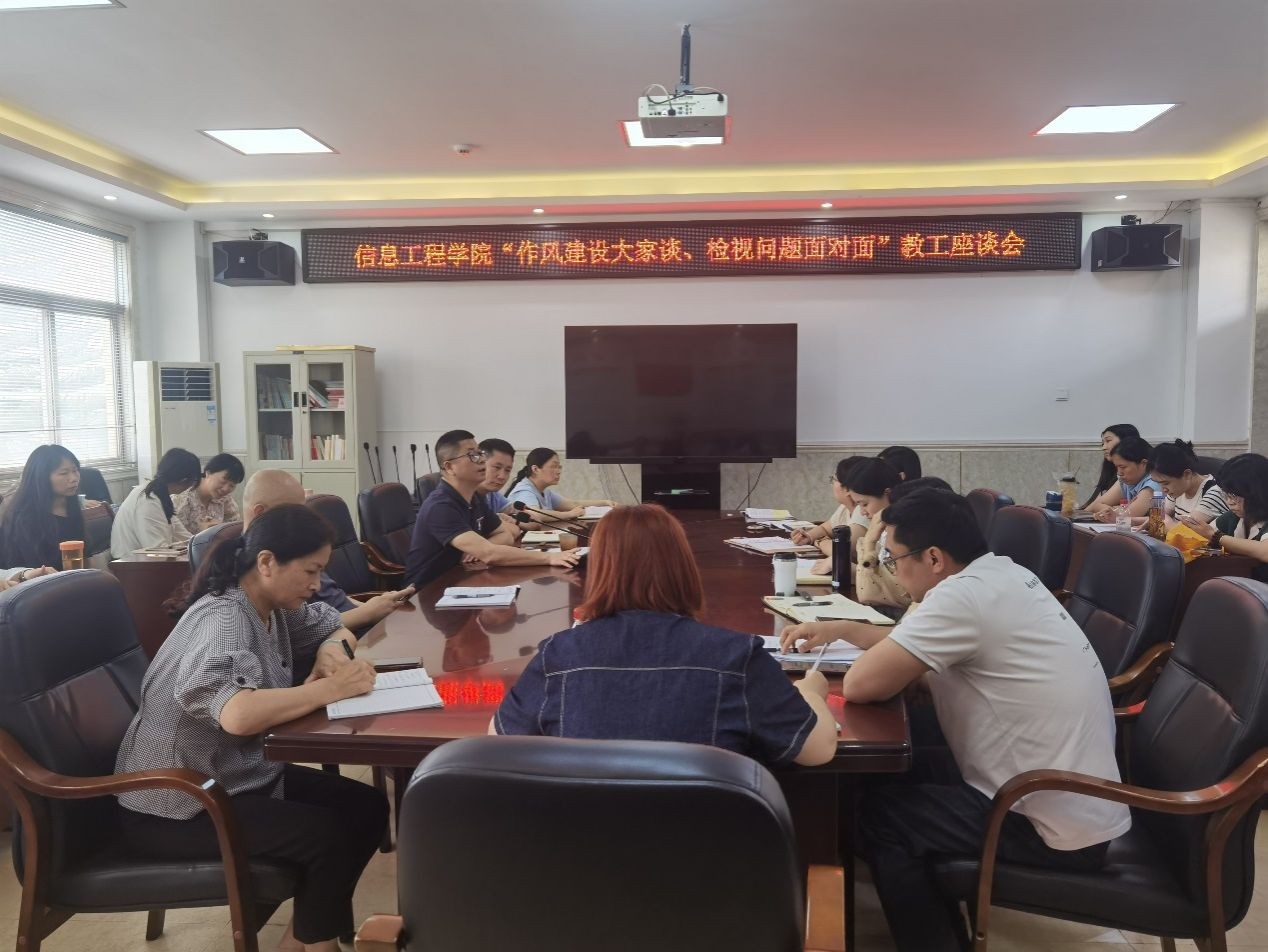 为进一步推进深入贯彻中央八项规定精神学习教育走深走实,深入群众切实解决广大师生的急难愁盼。5月21日,信息工程学院组织召开“作风建设大家谈、检视问题面对面”教工座谈会。学院全体教职工参加会议,会议由党总支副书记(主持工作)陈云德主持。