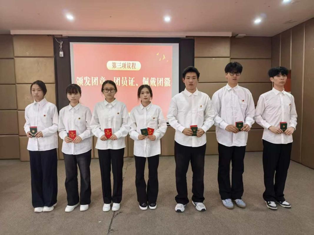 新团员代表曾旭扬同学发言并表示:将坚定理想信念,勤奋学习、锤炼品格,积极承担团的义务,以奋斗姿态激扬青春,为民族复兴贡献力量。优秀团员代表谢艺馨同学结合自身经历,激励新团员以奋斗的姿态践行使命,将青春热情融入国家发展大局,以实际行动彰显团员的担当精神。