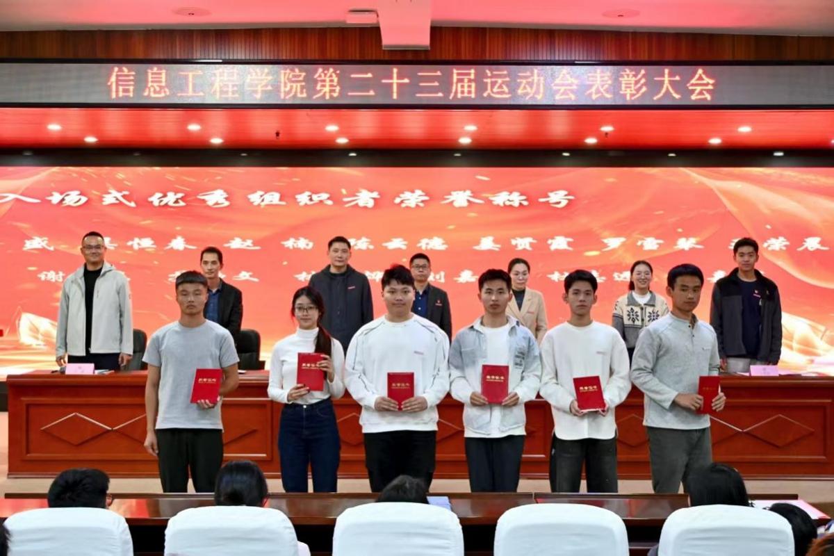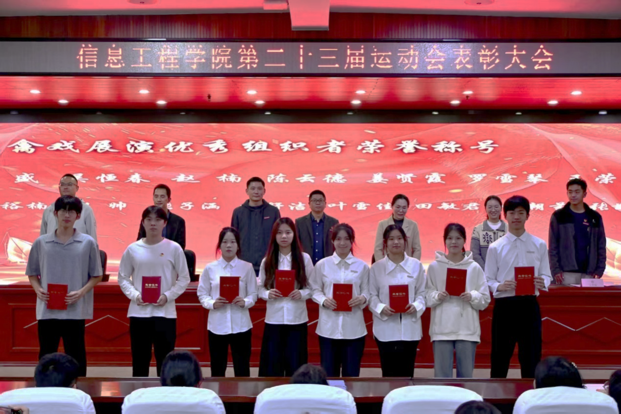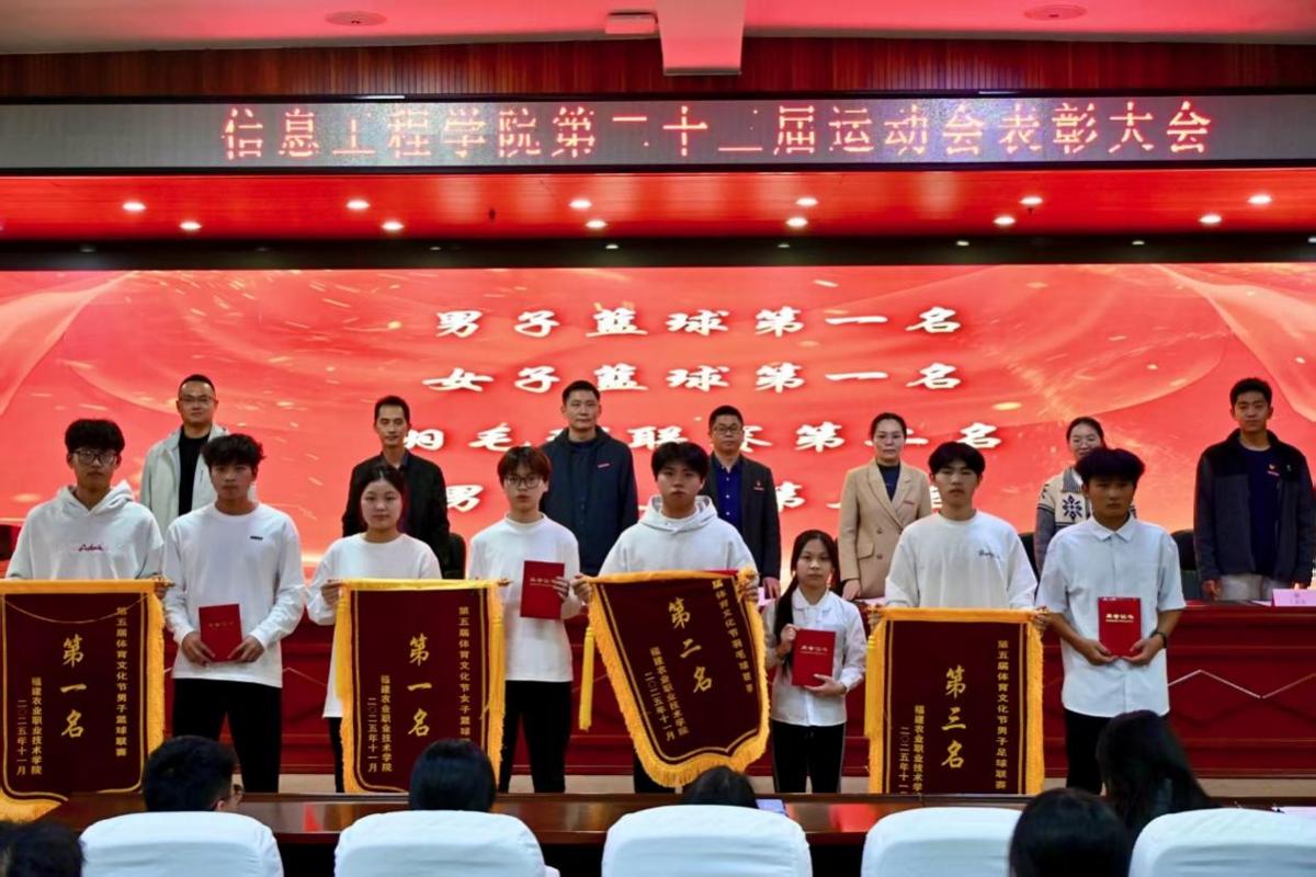 为表彰先进、弘扬体育精神,激发学子运动热情与拼搏斗志,2025年11月26日,信息工程学院第五届体育文化节暨第二十三届田径运动会表彰大会于闽台楼二楼学术报告厅召开。学院党总支书记陈云德、副书记赵楠等领导老师出席大会,会议由学工办负责人王盛老师主持。