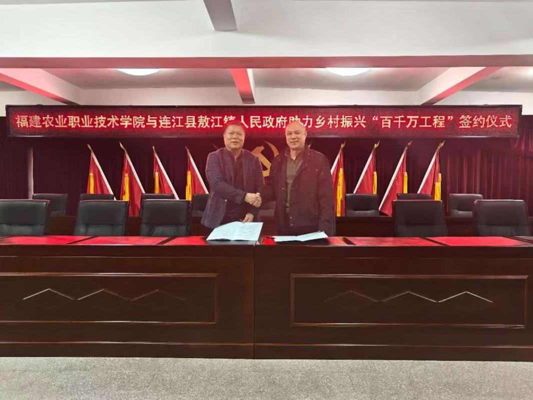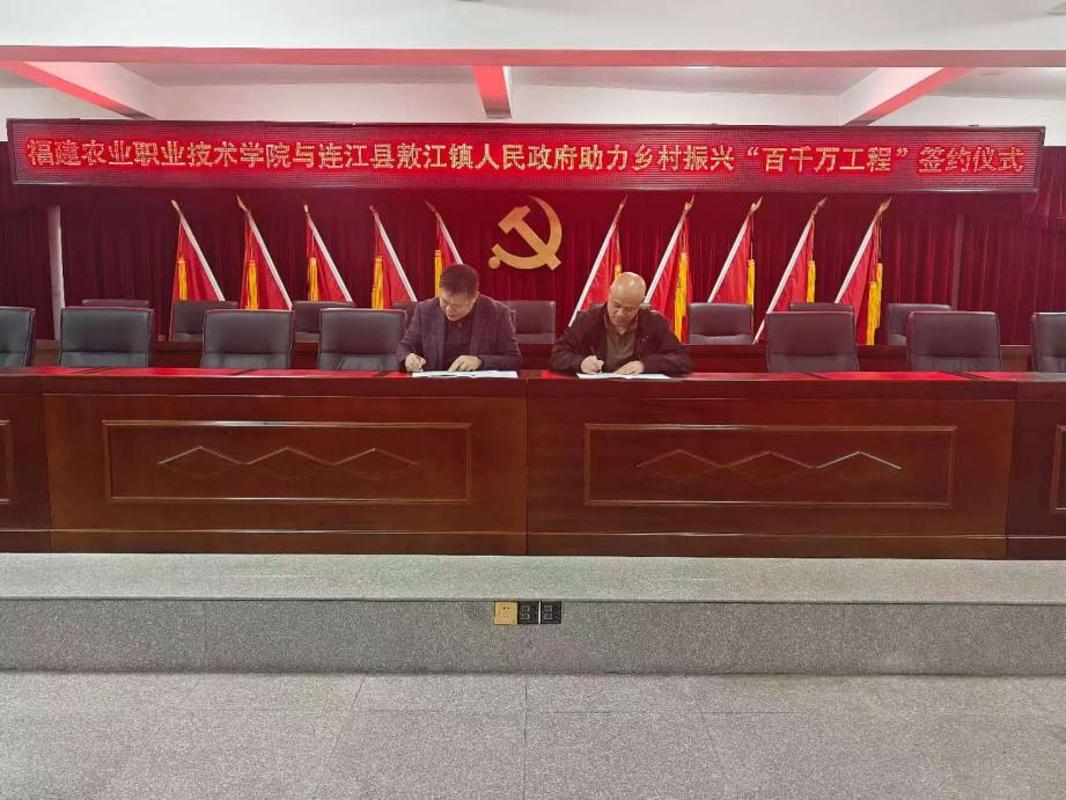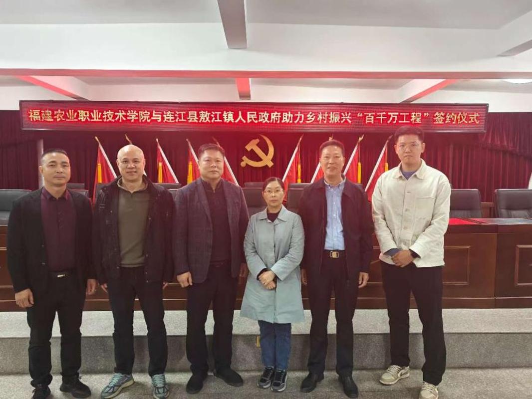 2025年12月5日,信息工程学院与连江县敖江镇人民政府围绕乡村振兴“百千万工程”合作座谈会暨签约仪式在敖江镇人民政府隆重举行。信息工程学院院长刘必健、副院长吴瑾、校友会常务副秘书长陈克银、青年教师代表郭子诚,敖江镇党委副书记、镇长李崧及镇相关部门负责人出席活动。