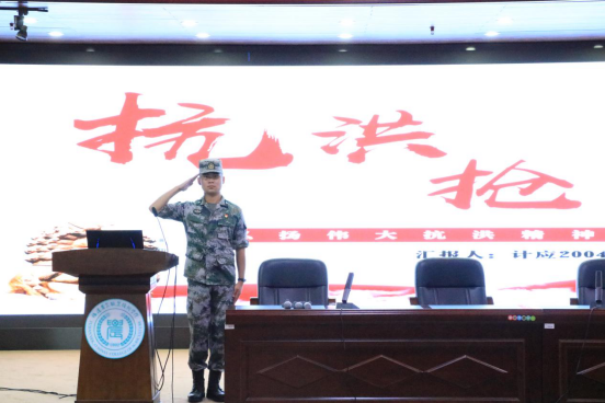 9月21日晚我院于学术报告厅开展以“抗洪抢险精神”为主题的交流分享会。此次分享会邀请了原中国人民解放军东部战区某旅退役军人郭铭旺,他用自己的亲身经历为2022级新生讲述闻汛而动、挺身而出的抗洪抢险精神。