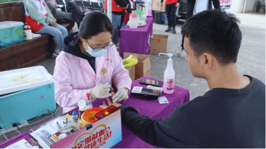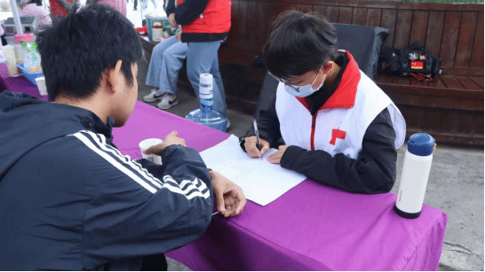 在志愿者引导下,同学们有序地进行登记,填表,体检,采血等工作。我校师生纷纷撸起衣袖,伸出臂膀,奉献鲜血,播种爱心,他们以自己的实际行动践行着关爱他人、传递温暖的社会责任,体现了高校学生积极向上的精神风貌。献血完的同学在献血区休息,志愿者为他们提供葡萄糖水、面包、糖果等小零食,保证他们献血后能够及时的进行能量补给。参与献血的吴同学表示,参与献血的初衷是为了能够帮助有需要的人,奉献自己的一份爱心,能为更多人带去希望与生命的延续。